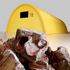 On the invitation of the MAC (Musée d’Art Contemporain) de Marseilles, in October 1998 I organized a “memory laboratory” inside a shipping container “bottled” by means of ceramic rockets. This is where the initial project, Elémentaire-Elémenterre, was presented. It took the form of seven successive installations representing different stages of digging into the layers of the camp. For the first installation Exodus, Transition, Temporariness (November 27, 1998-January 20, 1999), I created inside the laboratory a new space representing the camp through audiovisual elements. The window of the container was sealed. In the second installation, The Grand Arénas as Architecture of Emergency (January 20-24, 1999), I created linkages between different kinds of architectures of emergency and temporariness through documentary photos and texts. For the third installation, The Ceramic Rocket as a Body (January 24-March 13, 1999), the window was opened onto a model articulated with the laboratory. The new structure was a vault built according to the human body scale, using bottles made after sketches based on the fragments found in excavations. The fourth installation Passing Red Earth, Marseilles-Haifa (March 13-April 10, 1999) connection between France and Israel through both an article about the camp published in the Israeli daily newspaper Davar on August 29, 1950, and the use of a bottle and maritime maps of the Mediterranean Sea. The fifth installation Archaeological Excavations in the Territory of the Camp (April 10-20, 1999) presented the findings of the excavations I had conducted with offspring of immigrants, unearthing the foundations of one of the barracks. The sixth installation The Ceramic-Rockets as Symbol of Reconstruction (April 20-May 10, 1999) displayed truncated sections of walls and fragments of ceramic bottles placed on a conveyor belt. The last installation Kri’ah: Closing the Laboratory (May 20-27, 1999) was based on the completion of a circle. I incised the form of an arch the size of the bottled barracks model in the container wall. I filled the gaps with polyethurane foam, which swelled gradually during the days of the installation, covering the cut borders. It congealed and coagulated, leaving a turbid yellow-gray scare, a literal interpretation of trauma.
